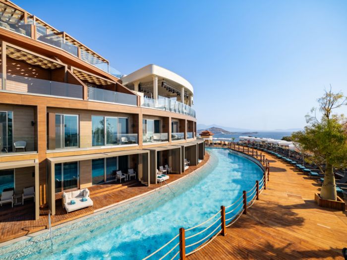 Хотелът се намира на 80 км от летище Измир, на 130 км от летище Милас, на 2 км от центъра на Кушадасъ, на 16 км от Ефес. Построен през 2015 г. с обща площ от 10 120 м².