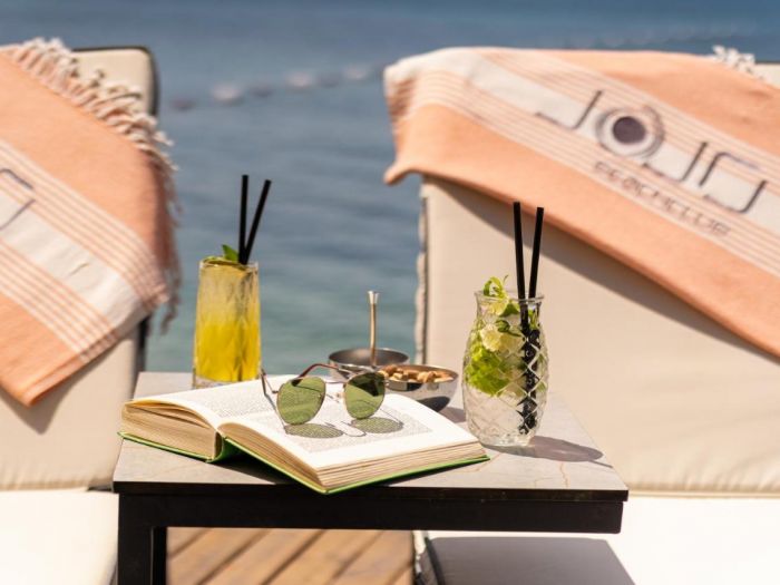 Платформа, чадъри, шезлонги и матраци на басейна и на плажа - безплатно.