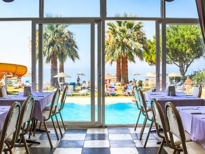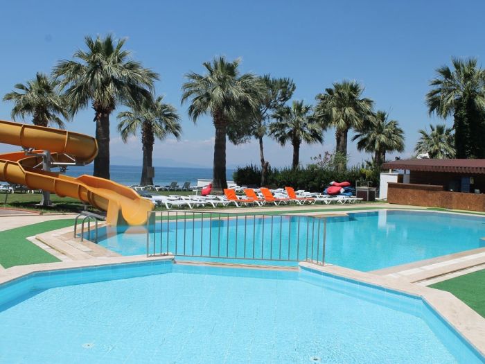 Намира се на 95 км от летище Измир, на 145 км. от летище Милас, на 22 км. от центъра на Кушадасъ, в селището Гюзелчамлъ, на брега на морето. Частично реновиран 2024 г.