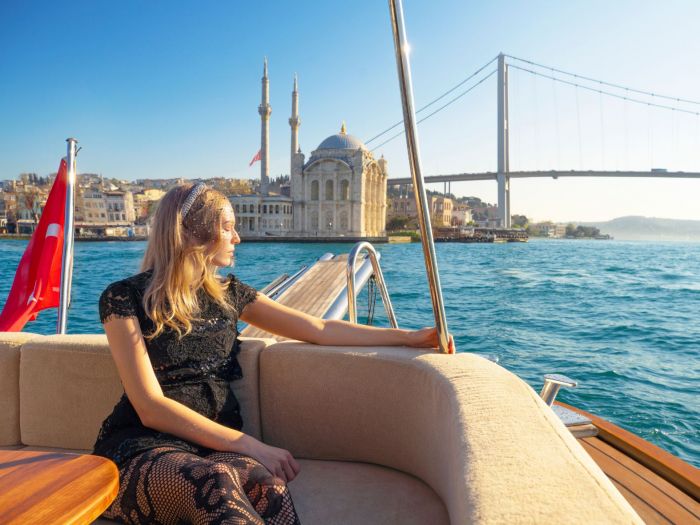 - Разходка с корабче по Босфора (продължителност около 2,5 часа) - 30 евро на човек.. Цената включва: трансфер от хотела и обратно, екскурзоводско обслужване, разходка с корабче. Вълнуващо пътуване, съчетано с беседата на професионален екскурзовод, възможност да се докоснете до красивите пейзажи и сгради, познати ни от телевизионния екран.