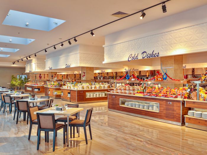 Основен ресторант, 3 а-ла-карт ресторанта (италиански, турски, средиземноморски – с предварителна резервация, 1 безплатно посещение), снек бар (24 ч), 9 бара от които един е диско бар, сладкарница, 2 открити и 1 закрит басейн, СПА център, аквапарк, фитнес, паркинг.