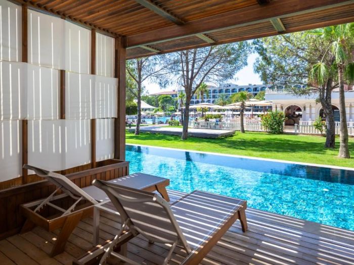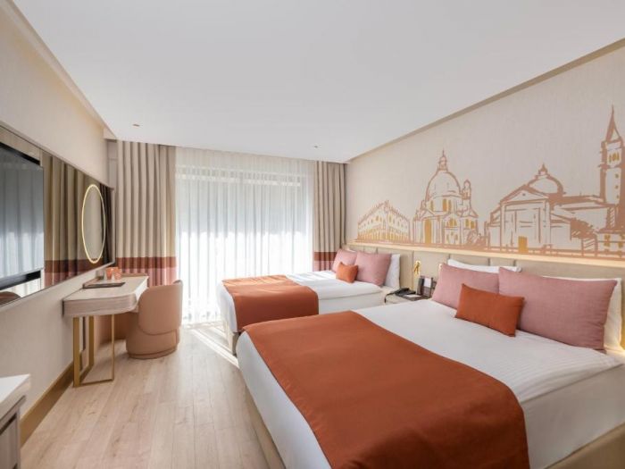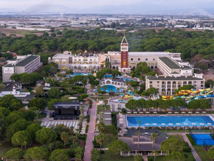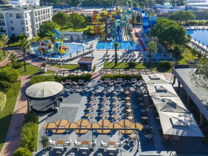 Намира се на 15 км от летище Анталия, на 20 км от центъра на Анталия, на 5 км от центъра на Лара, на брега на морето. Построен 2003г., на обща площ от 118 000 м2. Изцяло реновиран 2024-2025 г.