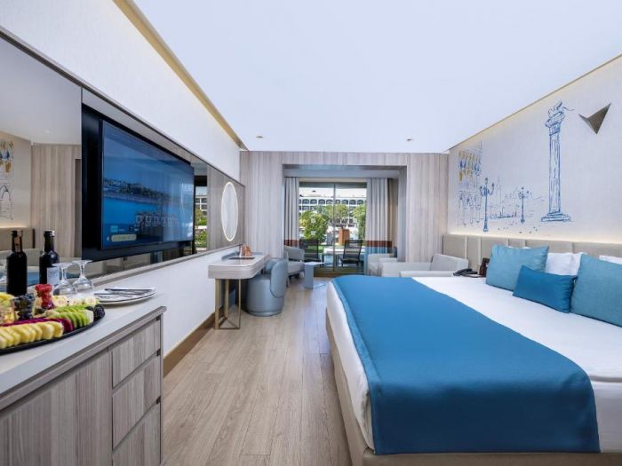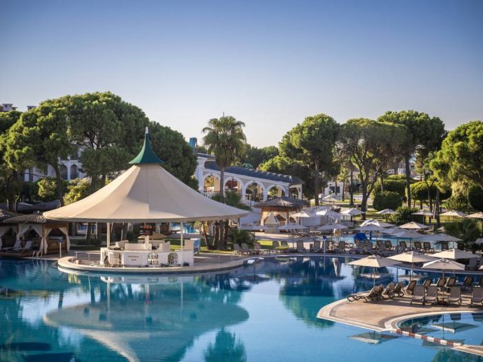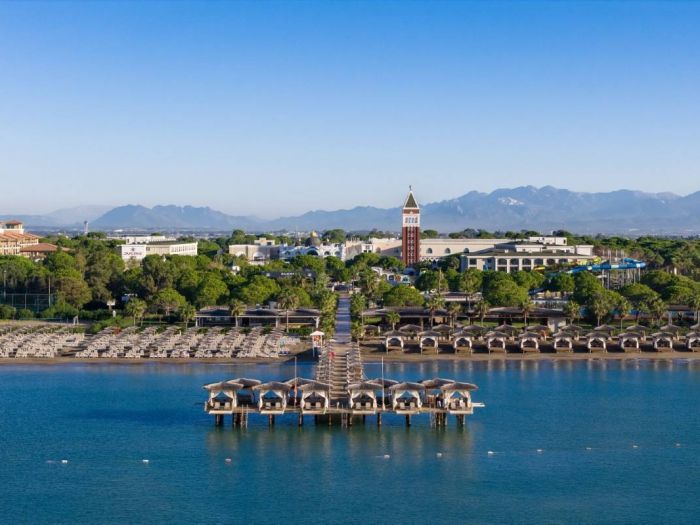 Основен ресторант, 4 а-ла-карт ресторанта – рибен, италиански, турски, стек (срещу заплащане, с предварителна резервация), 3 снек ресторанта, станция за бързо хранене, гьозлеме, 3 сладкарници, кафетерия, 7 бара, диско бар, 3 открити и 1 закрит (отопляем) басейн, аквапарк, СПА център, магазини, 2 конферентни зали, паркинг.