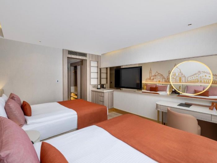 Всички стаи са оборудвани с климатик, телевизор, телефон, баня с душ/вана, сешоар, сет за чай/кафе, минибар (безплатен), сейф (безплатен).