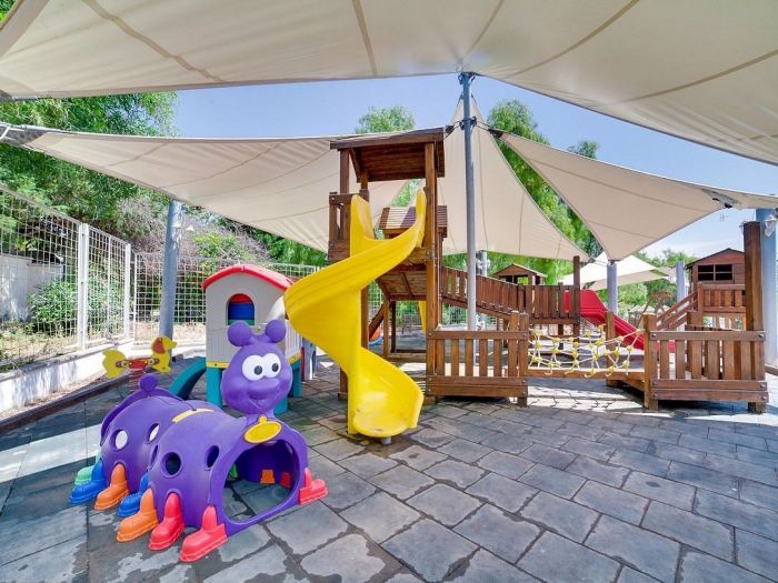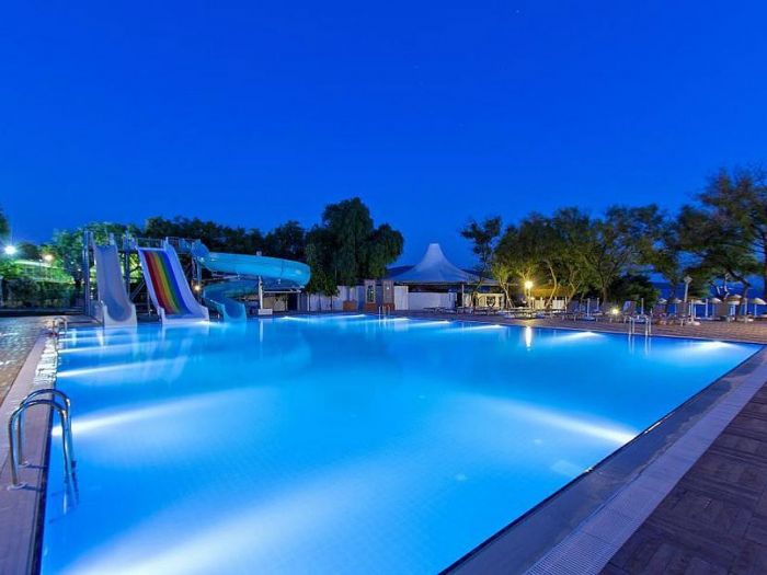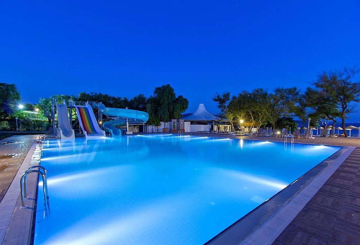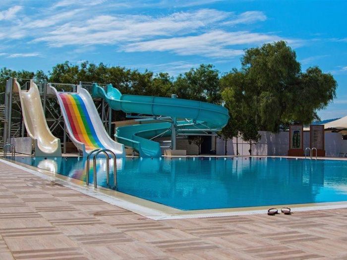За децата: детски басейн, водни пързалки, детска площадка, мини клуб (4–12 г.)