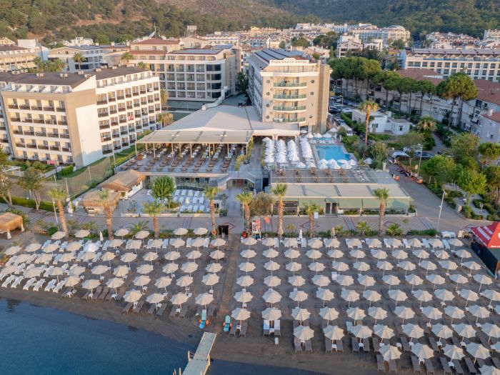 Хотелът се намира на 120 км. от летище Милас, на 90 км от летище Даламан, на 3 км. от центъра на Мармарис, на брега на морето. Построен през 1995 г. (блок „А“) и 1998 г. (блок „Б“) с обща площ от 9 000 м2. Реновиран през 2009 г. (блок „А“) и 2013 г. (блок „Б“).