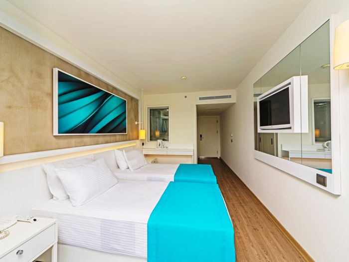 Хотелът разполага с общо 227 помещения за настаняване, от които Standard land view room/ side sea view/ sea view, Corner suite. Всички стаи са оборудвани с климатик, телевизор, телефон, баня с душ/вана, сешоар, мини бар (платен), сейф (платен), балкон. Почистване на стаите – всеки ден, смяна на спалното бельо и кърпите – 3 пъти в седмицата.