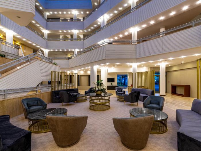 Основен ресторант, 2 бара, сладкарница, 1 основен открит басейн (160 см) и 1 малък басейн (50 см), фитнес център, магазини, паркинг.