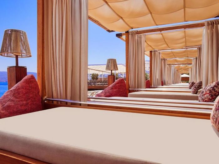 Собствен, платформа. Чадъри, шезлонги на плажа и при басейна – безплатно.