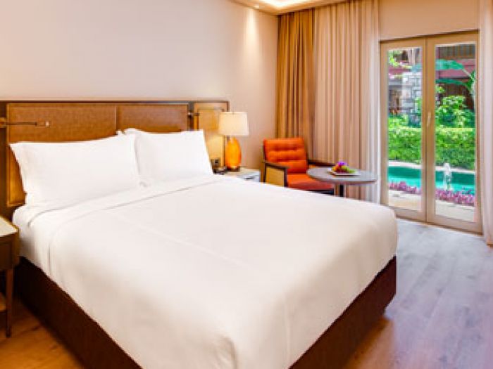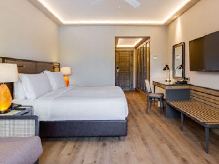 Стаи Standard Room (1 спалня, 1 баня - 33 м²), Superior Room (изглед градина, 1 спалня, 1 баня - 33 м²), Deluxe Garden View (изглед градина, 1 спалня, 1 баня - 35 м²), Deluxe Pool View (изглед басейн,1 спалня, 1 басейн - 35 м²), One Bedroom Suite Pool View (изглед басейн, спалня със зона за сядане, 1 баня - 55 м²), One Bedroom Suite Sea View (изглед море, спалня със зона за сядане, 1 баня - 55 м²).