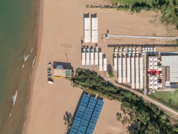 Собствена пясъчна плажна ивица с плавен преход на разстояние 400 метра от хотела. За удобство на гостите на хотела е предвиден безплатен шатъл бус до плажа. Безплатно ползване на чадъри и шезлонги на плажа и при басейна.