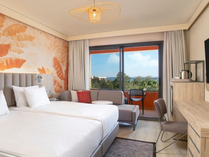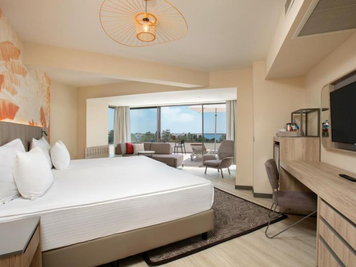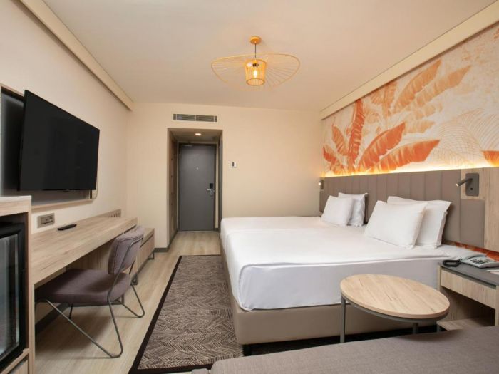 Хотелът разполага с общо 347 стаи, разположени в основна сграда, от които 77 Standard room garden view (изглед градина - 22 м2), 58 Standard room lake view (изглед езеро - 22 м2), 85 Standard room sea view (изглед море - 22 м2), 56 Comfort Standard room (спалня + легло кенгуру - 22 м2), 38 Bunkbed standard room (спалня + двуетажно легло - 22 м2), 12 Junior family room (2 спални, 1 баня, 37 м2), 20 Terrace family room (2 спални, 1 баня, тераса - 45 м2). Всички стаи са оборудвани с климатик, телевизор, телефон, баня с душ, халат и чехли, сешоар, минибар (вода, безалкохолни напитки и бира – безплатно зареждане всеки ден), сет за кафе/чай, сейф (безплатен). Почистване на стаите и смяна на кърпите - всеки ден, смяна на спално бельо и хавлии – през 3 дни.