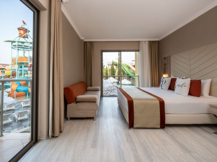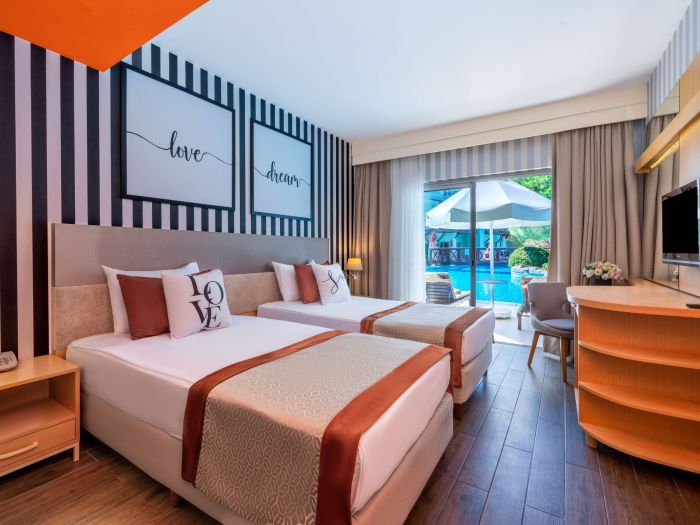 Стаи Aqua Building: 105 Aqua Room (изглед градина или басейн, 27 м2), 17 Aqua Family Room (2 спални, изглед градина или басейн - 45 м2).