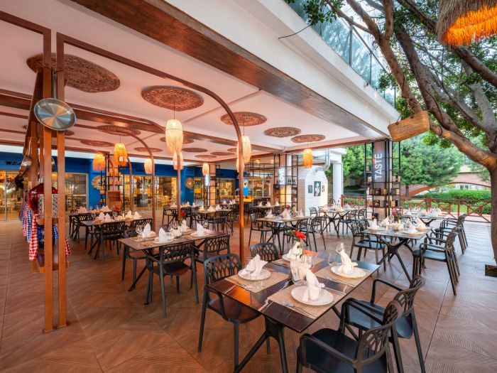 Основен ресторант, Lake Houses ресторант, 5 а-ла-карт ресторанта (турски, интернационален, мексикански, италиански, рибен - 1 безплатно посещение на един от ресторантите, при минимум 7 нощувки, с предварителна резервация), снек ресторант, гьозлеме, сладкарница, 8 бара, кафетерия, диско клуб, 5 открити и 1 закрит басейн, аквапарк с 14 пързалки, 5 конферентни зали, СПА център, магазини, паркинг.