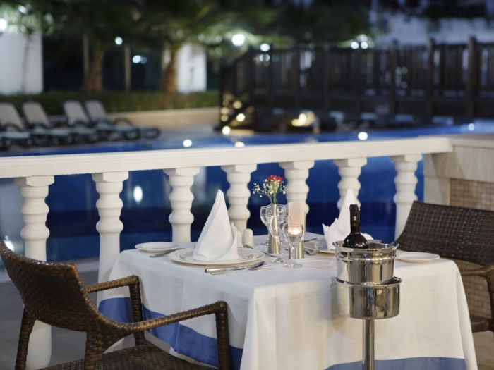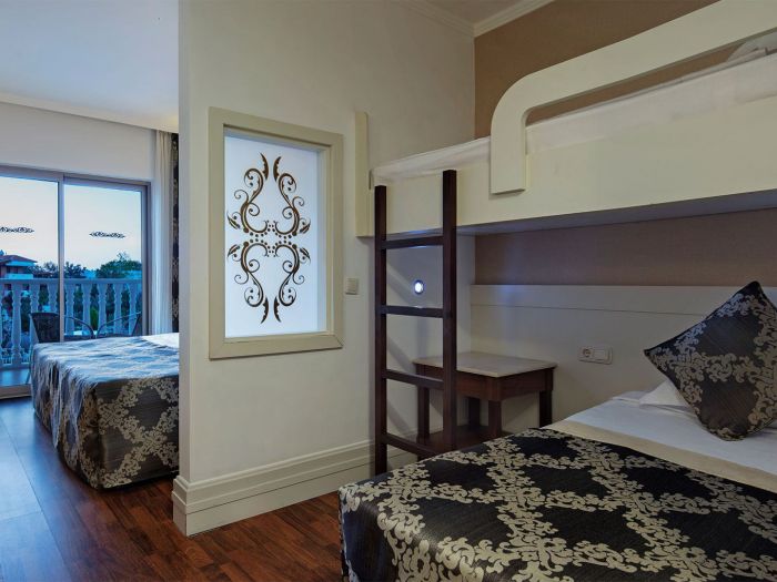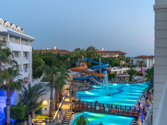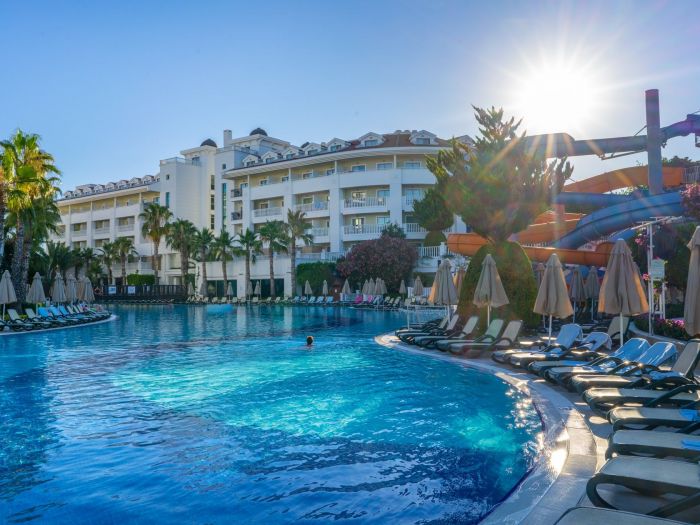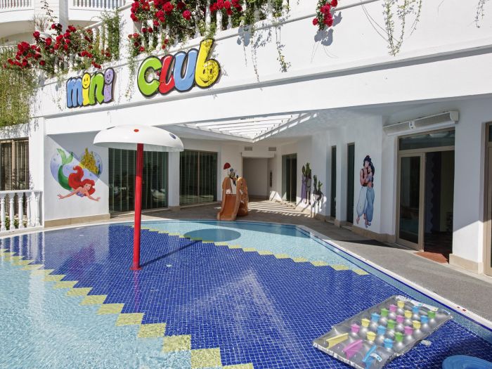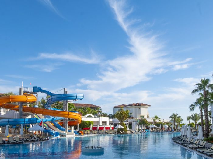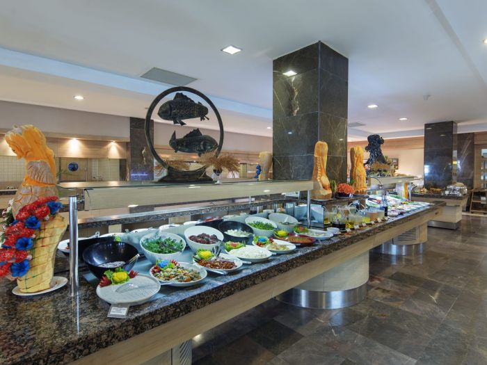 Основен ресторант, 2 а - ла - карт ресторанта, лоби бар, бар на плажа, диско бар, търговски център, доктор, тв салон, закрит басейн, открит басейна, детски басейн, 4 водни пързалки, интернет кафе. За децата: детски басейн, детска площадка, мини-клуб (4-12 год.),тийн клуб (13 - 17г.), детегледачка (платено). Безплатни услуги: турска баня, сауна, парна баня, джакузи, фитнес аеробика, аквааеробика, плажен волейбол, баскетбол, тенис на маса, тенис корт, дартс, мини-голф, боча, баскетбол, анимационна програма, дискотека, интернет в лоби. Платени услуги: масаж, билярд, игрални автомати, уиндсърфинг (с лиценз), интернет кафе, водни спортове, СПА - център.