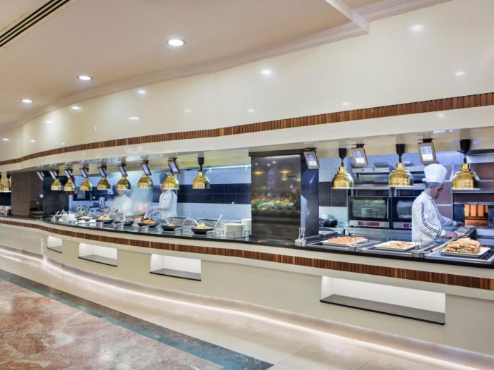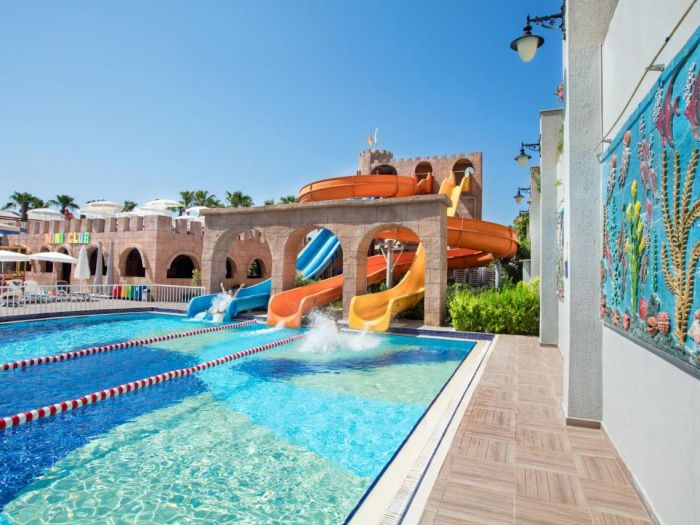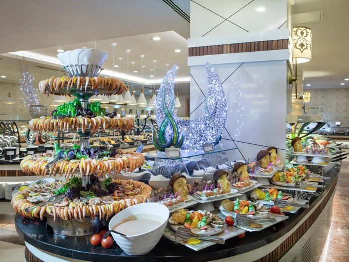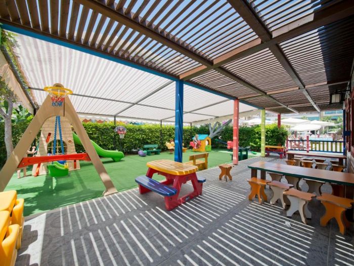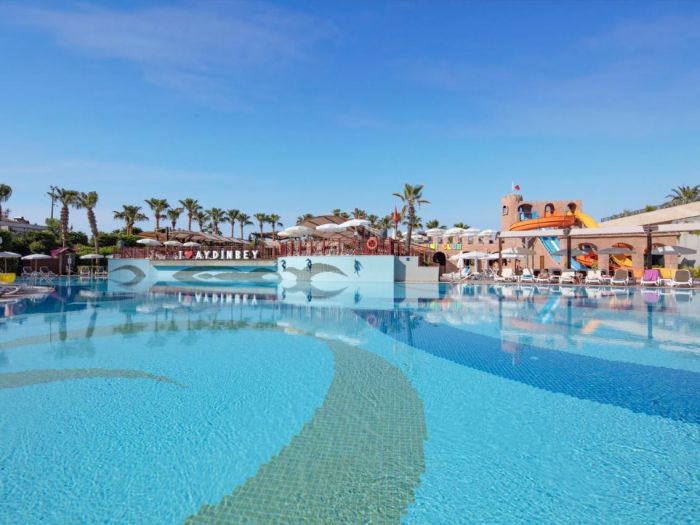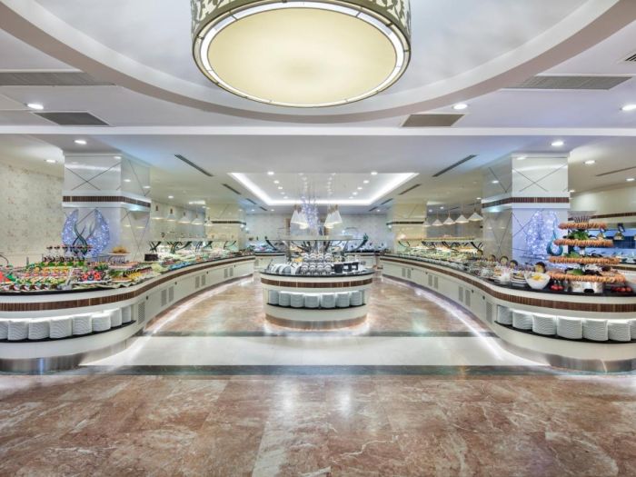 Основен ресторант, 6 а-ла-карт ресторанта (рибен, турски, италиански, азиатски, мексикански, барбекю – 1 безплатно посещение на 1 от ресторантите при минимум 7 нощувки), сладкарница, пекарна, 5 бара (1 от които 24 часа), 3 открити и 1 закрит басейн, водни пързалки, амфитеатър, СПА център, дискотека, магазини, 3 конферентни зали.