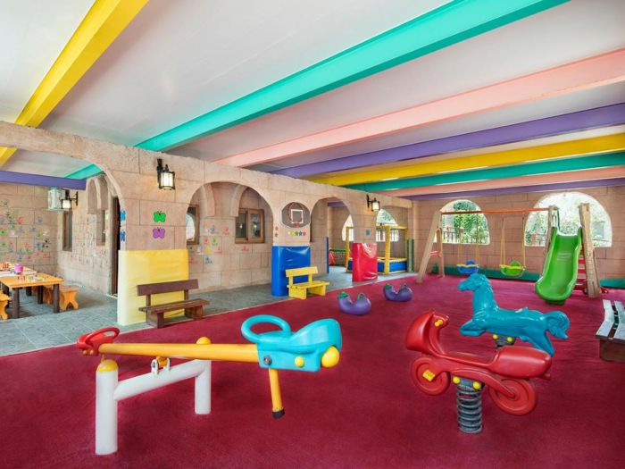 За децата: Детски бюфет, открит и закрит детски басейн, водни пързалки, мини клуб (4-12г), мини диско, детска анимация, детски фестивали, детска количка (под наем).