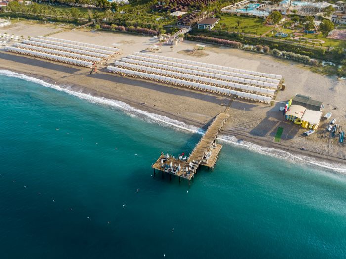 Намира се на 75 км. от летище Анталия, на 65 км. от центъра на Анталия, на 15 км. от центъра на Сиде, на брега на морето. Посторен през 1993 г., с обща площ 132.000 м2., реновиран през 2015 г. (екстериор, мебели и бани във всички стаи), 2019 г. (всички хотелски стаи в основна сграда), 2020 г. (всички клубни дуплекс стаи), 2023 г. (248 клубни стаи).