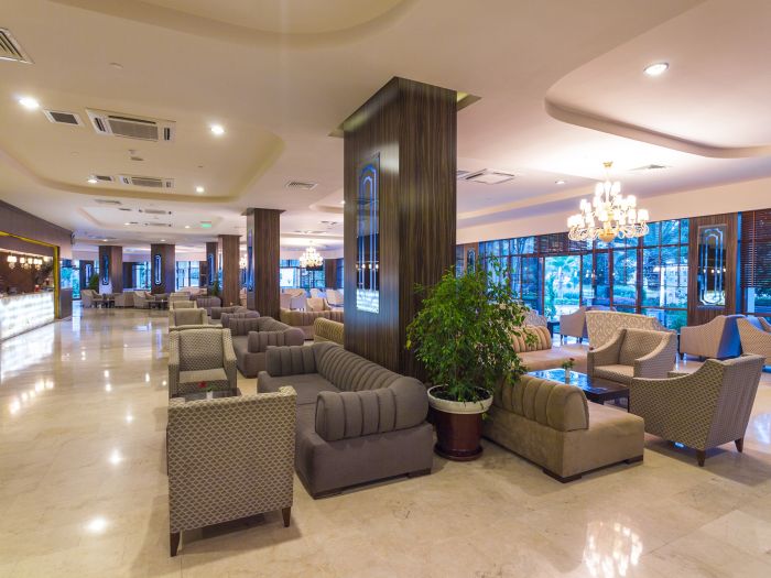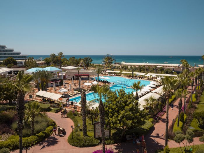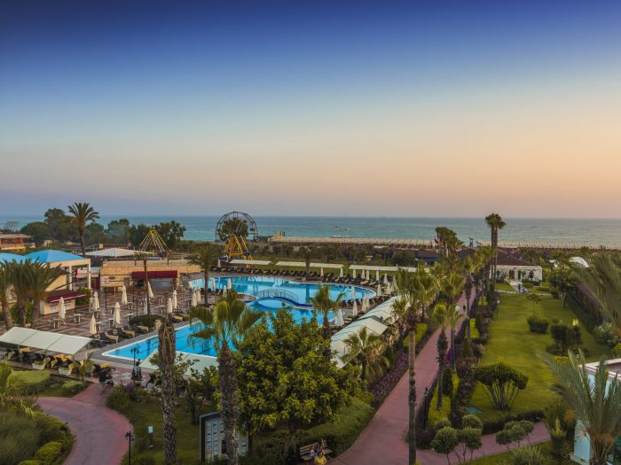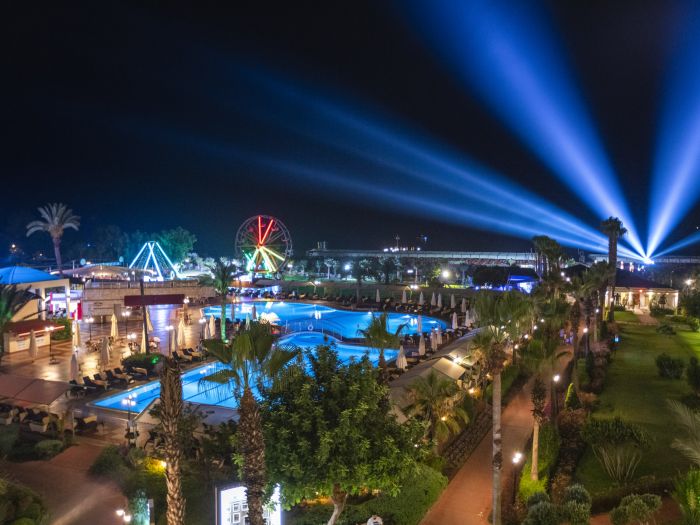 Основен ресторант, диетичен и вегетариански бюфет, 3 снек ресторанта, 3 а-ла-карт ресторанта (рибен, мексикански, китайски - с предварителна резервация и срещу доплащане), 8 бара, 3 открити и закрит басейн (отопляем през зимния сезон), дискотека, сладкарница, аквапарк с 14 водни пързалки (7 за възрастни и 7 за деца), лунапарк, мини зоопарк, СПА център, магазини, 3 конферентни зали, Wi-Fi.