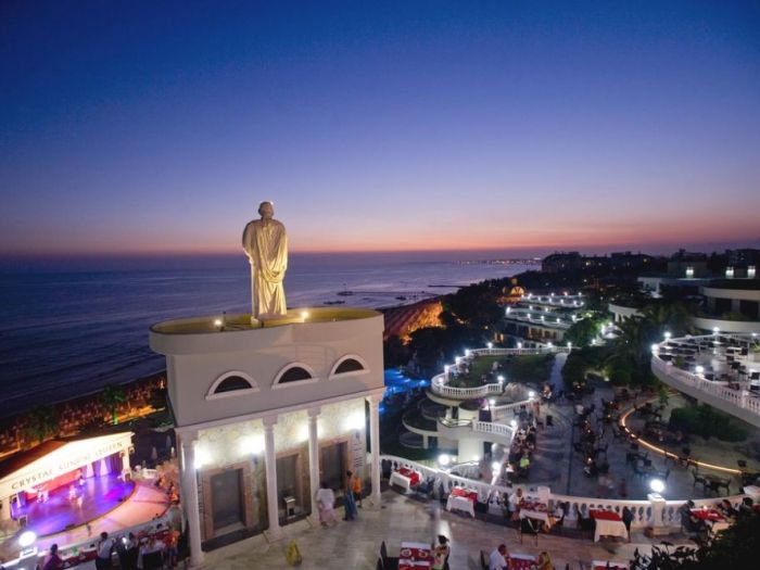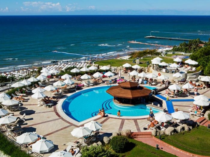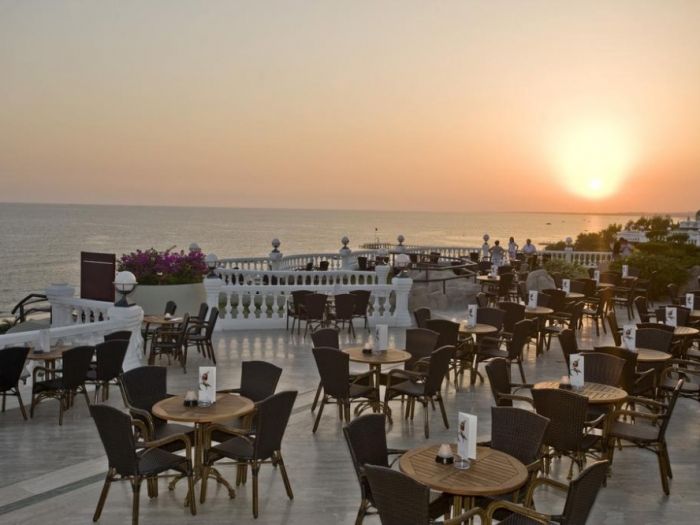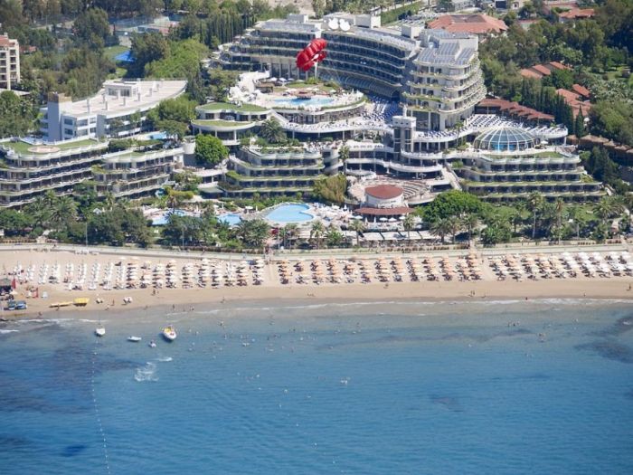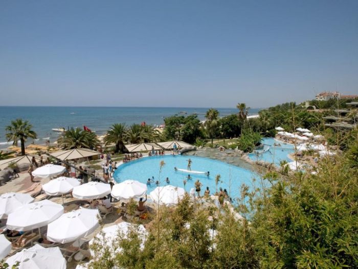 0сновен ресторант, диетично меню, вегетарианско меню, 4 a - лa - карт ресторанта (турски, рибен, италиански, мексикански, с предварителна резервация, за едноседмичен престой посещението на два ресторанта 1 път – безплатно), 9 бара, 6 открити басейна, закрит басейн, 3 водни пързалки, кино, лекарски кабинет, СПА център (платено), фризьорски салон (платено), магазини, пералня, химическо чистене, 3 конферентна зала , футболно поле на плажа (25х30) За децата: детски бюфет, 2 детски басейна, 2 детски водни пързалки, мини-клуб (4-12 год.), бебефон (платено), нагревател за бутилки (платено), блендер (платено), детска количка (с резервация, платено) детегледачка (платено). Безплатни услуги: турска баня, сауна, парна баня, фитнес, аеробика, аквааеробика, плажен волейбол, мини-футбол, скуош, боча, 6 тенис корта в твърдо покритие, тенис на маса, дартс, анимационна програма музика на живо (2 пъти седмично), дискотека, безжичен интернет (на цялата територия). Платени услуги: масаж, боулинг (2 пътеки),билярд, наем на тенис, ракети и топки, осветление на тенис ракети и топки, уроци по тенис, игрални автомати, водни спортове, уиндсърфинг (с лиценз), интернет - кафе, фризьор, СПА-център.