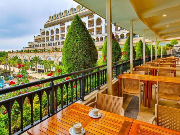 Ultimate All inclusive – закуска, обяд и вечеря с включени междинни хранения, алкохолни и безалкохолни напитки - без лимит (съгласно концепцията на хотела).