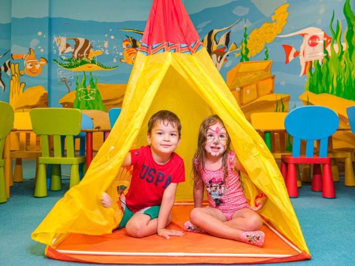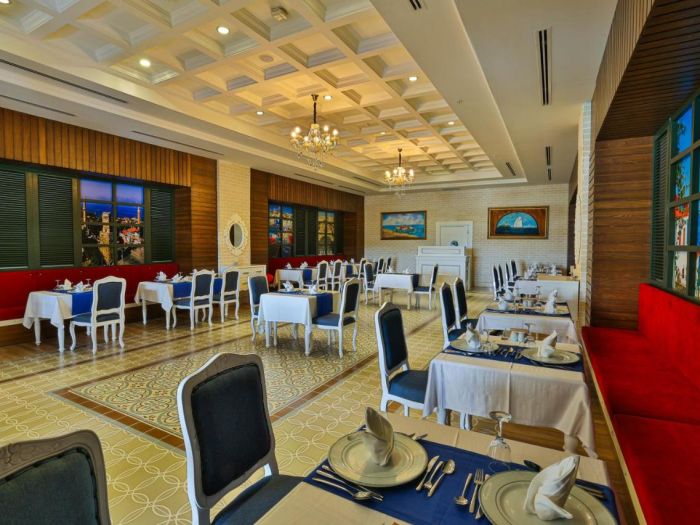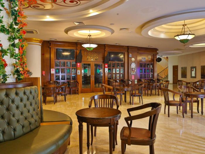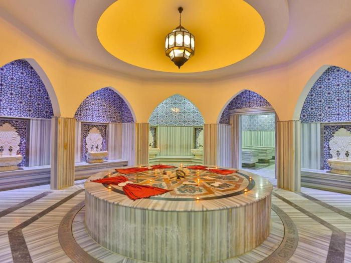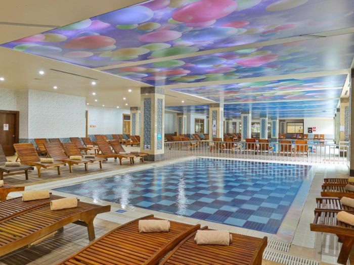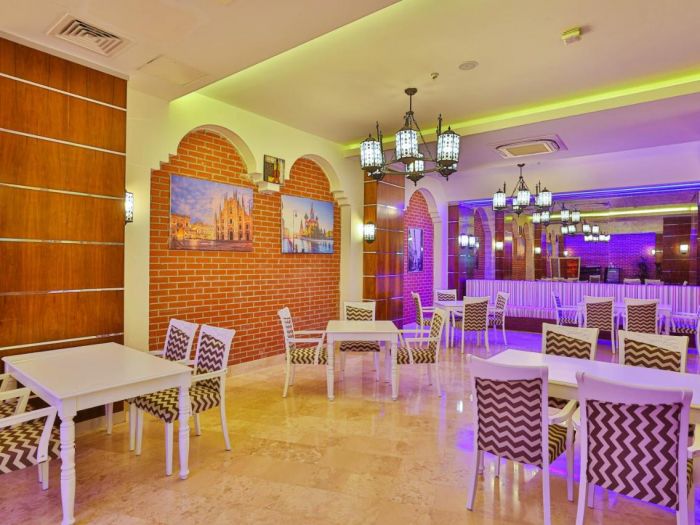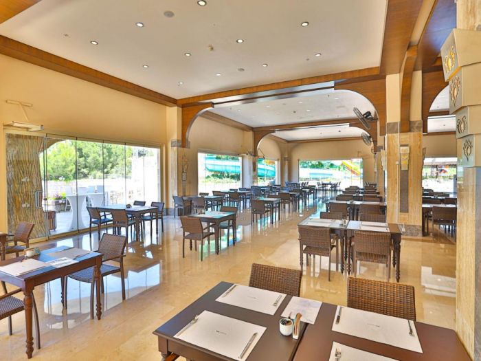 Основен ресторант, 7 ресторанта а - ла -карт (азиатски, мексикански, османски и рибен, барбекю, италиански и вилидж - срещу доплащане), 7 бара, сладкарница, 4 открити и 1 закрит басейн, 11 водни пързалки, лекарски кабинет, SPA-център, 2 конферентни зали. За децата: външен и вътрешен детски басейни, водни пързалки, детско кино, детска площадка, мини клуб(4-12г.), тийн клуб(13-16г.), детски а-ла-карт ресторант - с предварителна заявка. Безплатни услуги: турска баня, 2 сауни, фитнес, парна баня, солена стая, вътрешен басейн, 2 тенис корта, плажен волейбол, тенис на маса, водно поло, аеробика, зумба, боча, дартс, пилатес, йога, мини голф, мини футбол, плажен волейбол, сейф, паркинг, WI-FI, анимация, дискотека. Платени услуги: фризьор, СПА център, лекар, детегледач, магазини, боулинг, билярд, тенис оборудване, водни моторни спортове, бебефон.