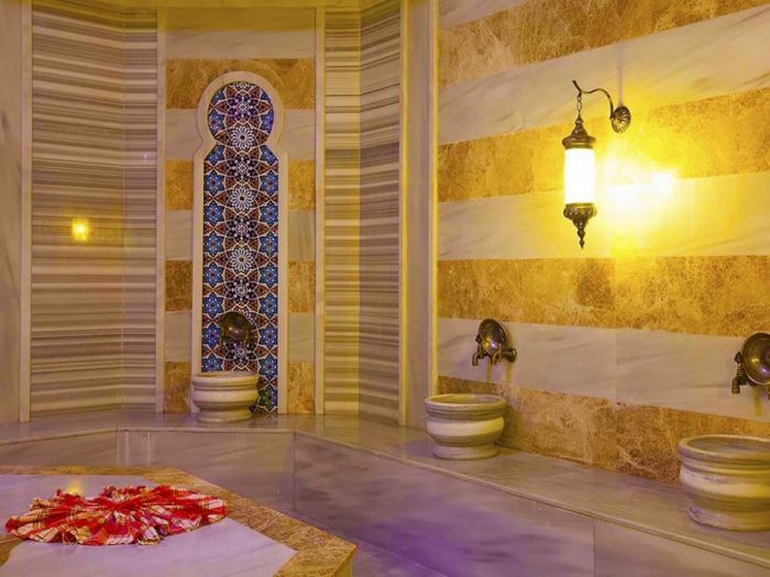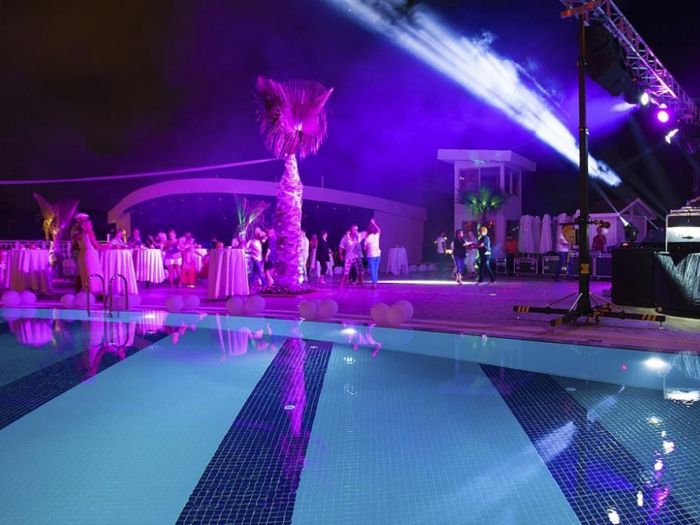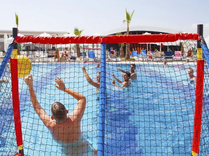 Безплатни услуги: Wi-Fi, фитнес (40 м2), воден фитнес, аеробика, анимация, водни пързалки, тенис на маса, билярд, дартс, вътрешни басейни, сауна, турска баня, парна баня.