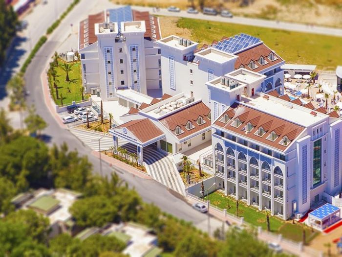 Хотелът се намира в района на Чолаклъ на 10 км. от Сиде, на 55км от летоще Анталия, на 300 м. от плажа. Отворен през 2014 г.