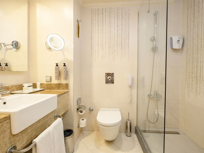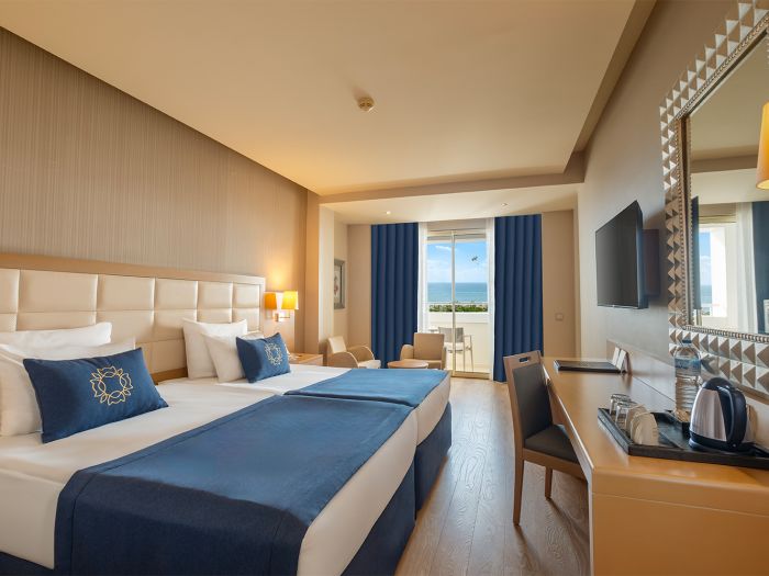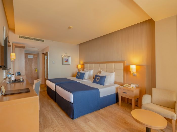 Състои се от 6-етажна основна сграда, отделен корпус Beach House и четири отделни 4-етажни корпуса Terrace House, разположени в близост до релакс-басейна (Terrace сградите са без асансьор). Всички стаи са оборудвани с вана,сешоар, индивидуален климатик, телевизор, телефон, мини-бар (безалкохолни напитки и бира се зареждат ежедневно), безплатно, сейф (безплатно), подова настилка – теракот, балкон, ежедневно почистване на стаята, смяна на спалното бельо – 2 пъти седмично