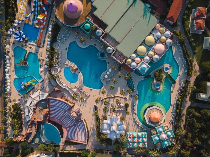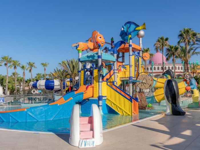 Oсновен ресторант, 5 a la carte ресторанта (китайски, рибен, италиански, турски, мексикански – с предварителна резервация, срещу заплащане), 7 бара, 3 открити басейна, закрит басейн, релакс басейн, аквапарк (6 водни пързалки), кино (в хотел Fulya), лекарски кабинет, СПА център (в хотел Fulya; платено), фризьорски салон, търговска алея, пералня (платено), химическо чистене (платено), 3 футболни игрища (65х100, 48х90, 70х95) Безплатно: турска баня (в хотел Fulya), сауна, парна баня (в хотел Fulya), джакузи, фитнес, аеробика, аквааеробика, плажен волейбол, баскетбол, 5 тенис корта с кварцово покритие, тенис на маса, дартс, стрелба с лък, мини-голф, безмоторни водни спортове, уиндсърфинг (с лиценз, 1 час), анимационна програма, музика на живо, дискотека, безжичен интернет (в лоби). Платени: масаж, боулинг, билярд, игрални автомати, осветление на тенис кортовете, наем на тенис ракети и топки, уроци по тенис, моторни водни спортове, катамаран (с лиценз), интернет кафе (в хотел Fulya), безжичен интернет.
