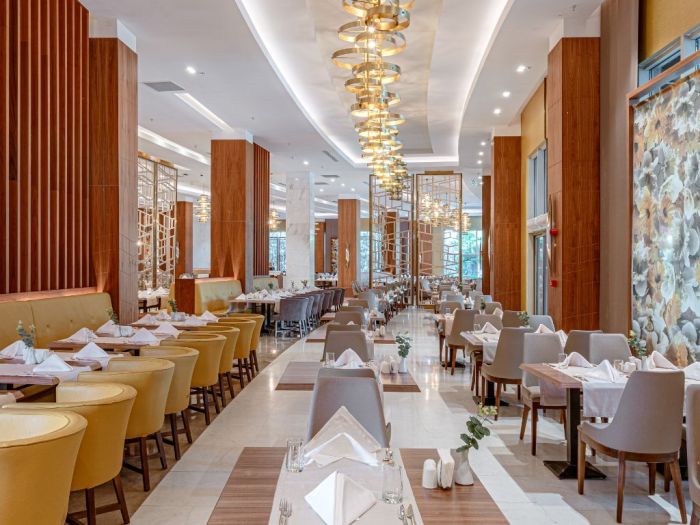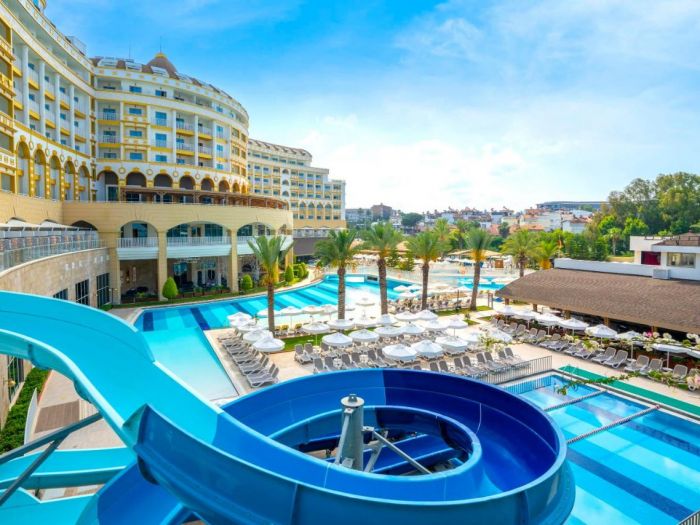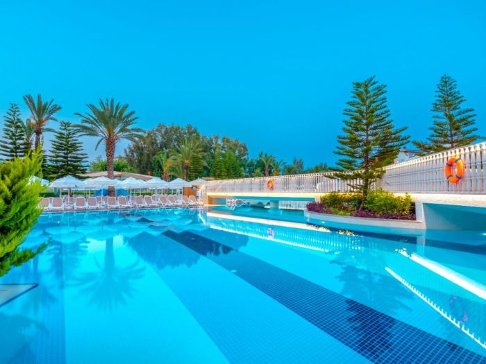 Оснорен ресторант, а ла карт ресторанти (средиземноморски, турски, суши, стек), 7 бара, дискотека, външен басейн, басейн с 3 пързалки, полу-олимпийски басейн, вътрешен басейн, анимация и различни спортни занимания, 2 конферентни зали. Безплатни услуги: турска баня, сауна, фитнес, водно поло, водна гимнастика,боча, дартс, тенис на маса, тенис на корт, плажен волейбол, баскетбол, мини футбол. Платени услуги: масажи, Аюрведа, различни терапии за лице и тяло, фризьорски салон, лекар, химическо чистене, коли под наем, водни спортове, За децата: детски басейни външен и вътрешен, мини клуб, мини диско, детска площадка,