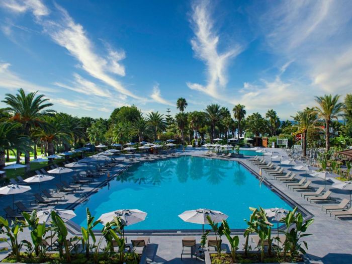 Основен ресторант, 2 а-ла-карт ресторанта (италиански, средиземноморски – 1 безплатно посещение на 1 от ресторантите при минимум 7 нощувки), сладкарница, 11 бара, открит и закрит басейн (отопляеми през зимния период), водни пързалки, дискотека, амфитеатър, СПА център, магазини, паркинг.
