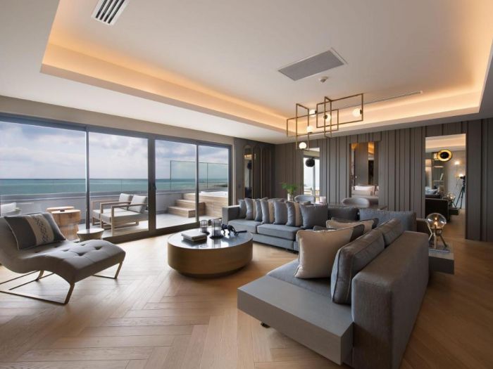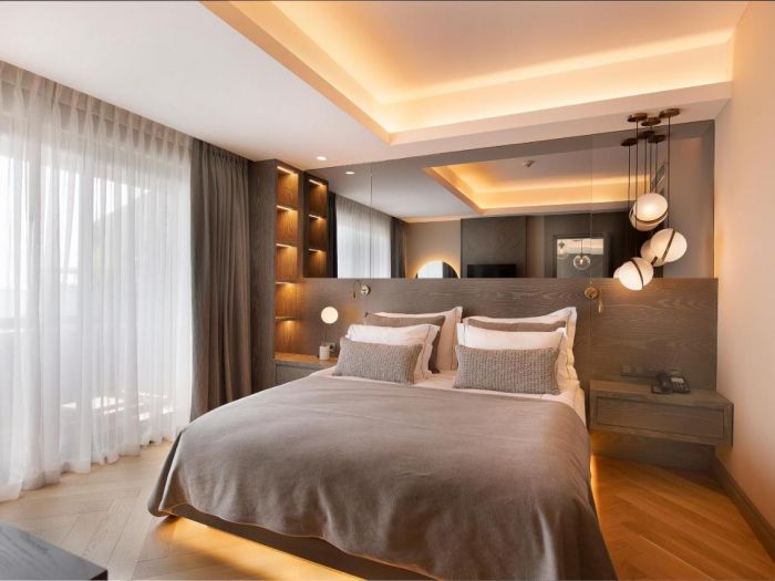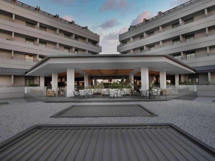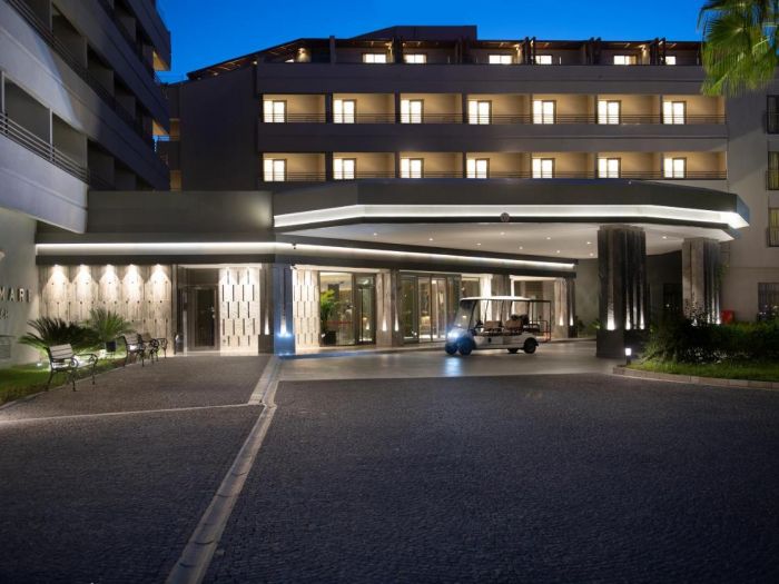 Стаи Main Building: Superior room land view (изглед суша – 30 м2), Superior Room Side Sea View (страничен изглед море – 30 м2), Superior Sea View (изглед море - 30 м2), Superior Family room (2 спални, 1 баня, изглед суша – 42 м2), Superior Corner room (изглед суша – 35 м2), Deluxe Terrace and Jacuzzi room (джакузи, тераса с кът за сядане – 40 м2, изглед градина или море – 80 м2), Suite room (спалня с джакузи, всекидневна, балкон – 10 м2, изглед море – 70 м2).