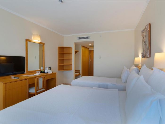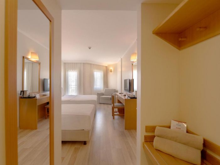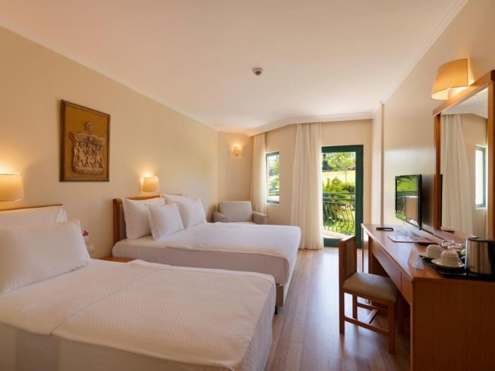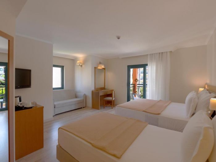 Стаи Main Building: Standard room (28 м2), Standard room Sea view (с изглед море - 28 м2), 95 Hotel Family room (2 спални, 1 баня - 43 м2), Junior Suite room (1 спалня, всекидневна, 2 бани - 45 м2), Suite Land view room (с изглед суша, 1 спалня, всекидневна, 2 бани - 40 м2), Suite Sea view (с изглед море, 1 спалня, всекидневна, 1 баня - 50 м2), Suite with Sauna & Jacuzzi* (1 спалня, 2 бани, джакузи – 75 м2), King Suite* (2 спални, всекидневна, 1 баня – 75 м2), Handicapped room (пригодени за хора с ограничена подвижност - 28 м2).