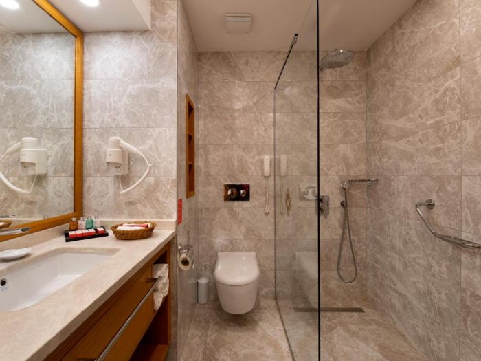 Всички стаи са оборудвани с климатик, телевизор, телефон, баня с душ, сешоар, козметичен сет за баня, сет за чай/кафе, минибар (безплатен), сейф (безплатен).