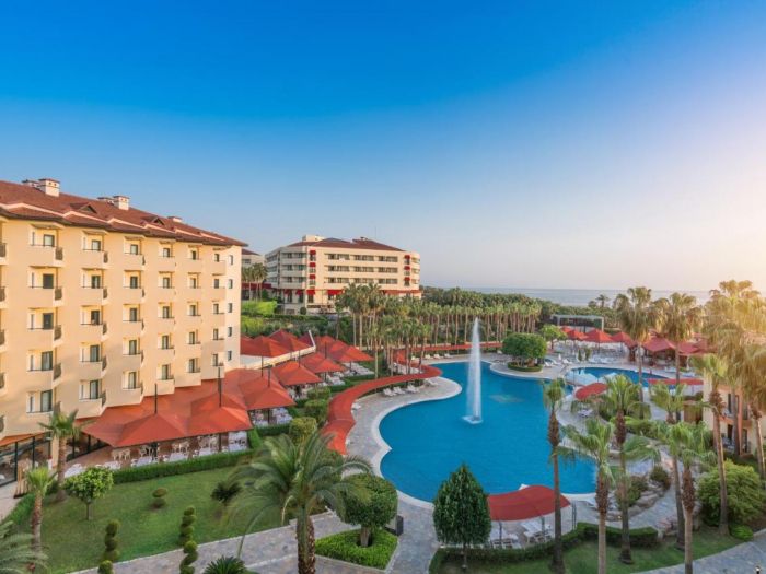 Основен ресторант, а-ла-карт ресторант (турски - 1 безплатно посещение при минимум 7 нощувки), снек ресторант, сладкарница, 3 бара, 2 открити басейна, СПА център, дискотека, магазини, паркинг.