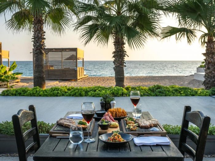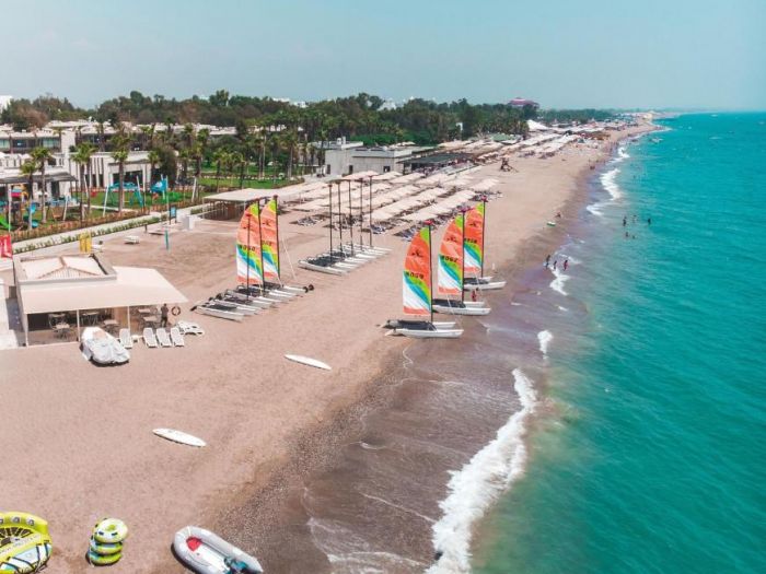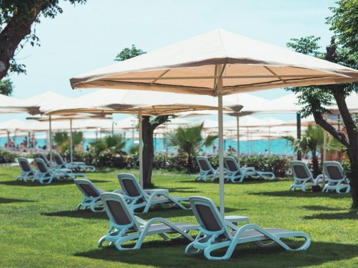 Собствен, пясъчно-чакълест плаж. Чадъри, шезлонги, матраци на плажа и при басейна – безплатно. Плажни кърпи - безплатно.