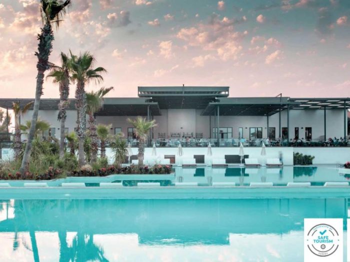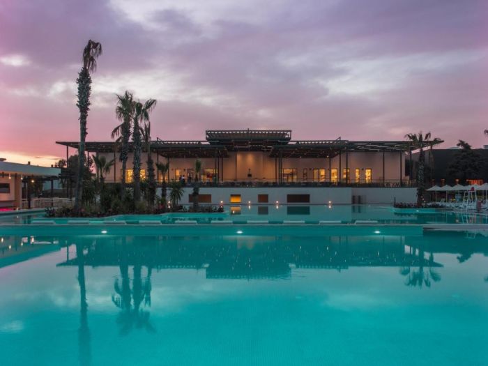Основен ресторант, 3 а-ла-карт-ресторанта (средиземноморски, азиатски, грил - платен), 5 бара, 1 открит басейн, аквапарк, дискотека, СПА - център, паркинг, Wi-Fi.