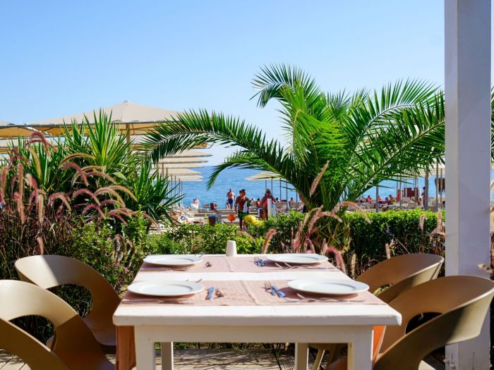Собствен, пясъчен, на 300 м. от хотела. Безплатен шатъл до плажа (по разписание). Чадъри, шезлонги и плажни кърпи на плажа и при басейна - безплатно.