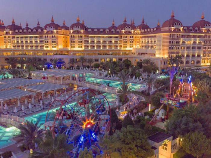 Основен ресторант, 5 а-ла-карт ресторанта (италиански, далекоизточен, мексикански, турски, рибен - срещу заплащане, с предварителна резервация), снек ресторант, сладкарница, 6 бара, диско бар, открит и закрит басейн, аквапарк, лунапарк, амфитеатър, СПА център, магазини, 4 конферентни зали.