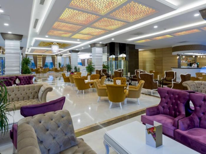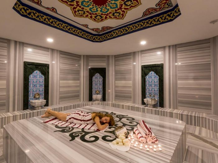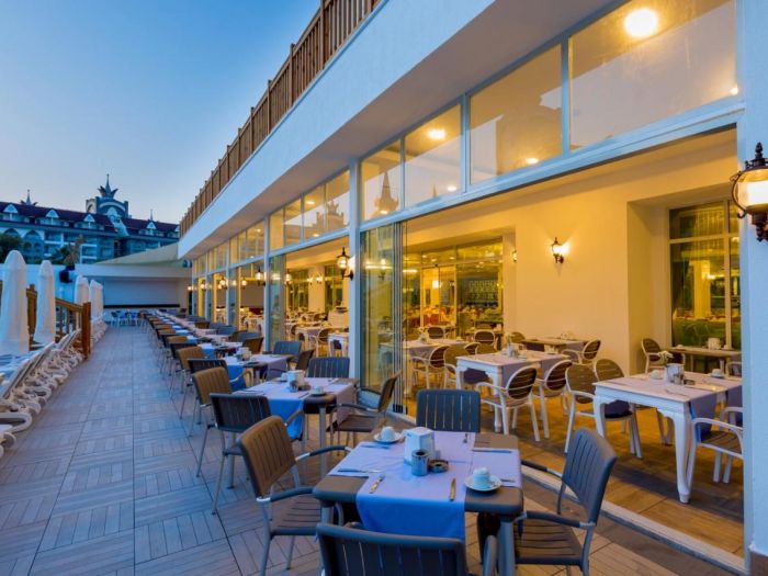 Основен ресторант, 2 а-ла-карт ресторанта (рибен, турски, международна кухня - с предварителна резервация), 4 бара, открит закрит басейн, 3 водни пързалки, СПА център, конферентна зала.