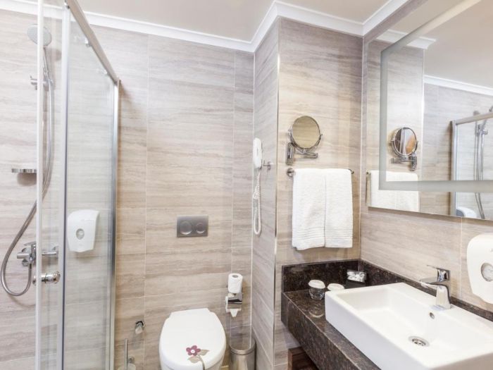 Хотелът разполага с общо 207 стаи, разположени в една 4-ри етажна основна сграда, от които 167 standard room ( 28 м2); Eco Room (без балкон, на първи етаж, 28 м2); 40 двустайни family room (2 спални с врата, 37 м2). Почистване на стаите - всеки ден, смяна на спалното бель - 3 пъти в седмицата.