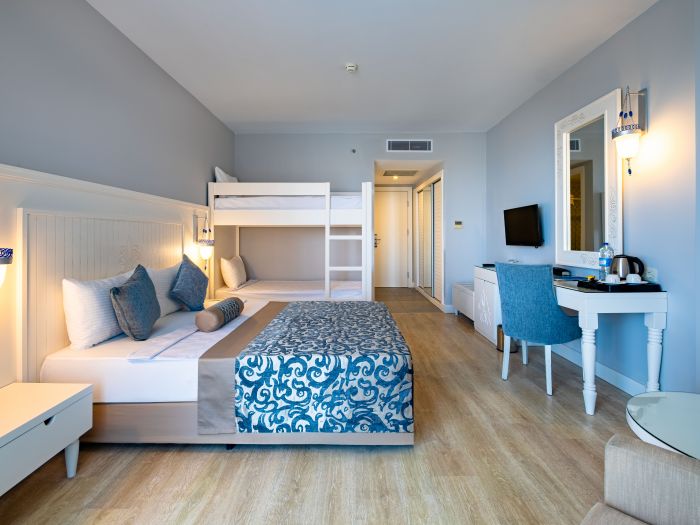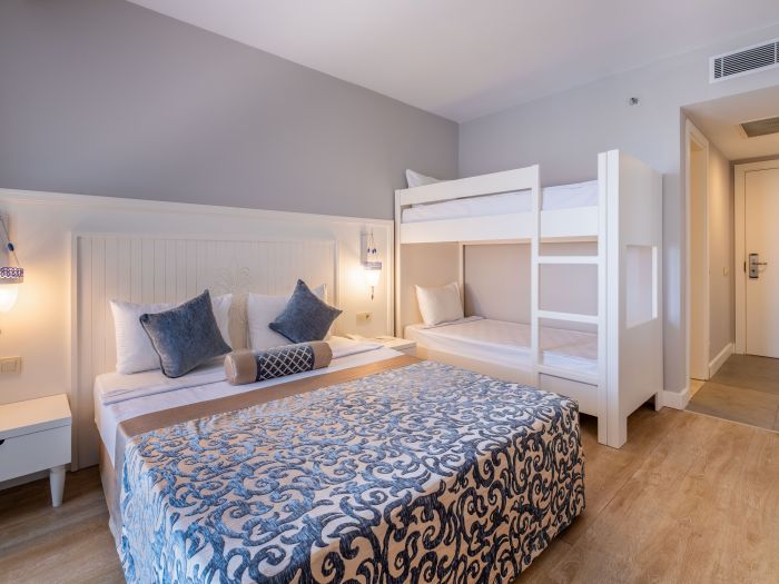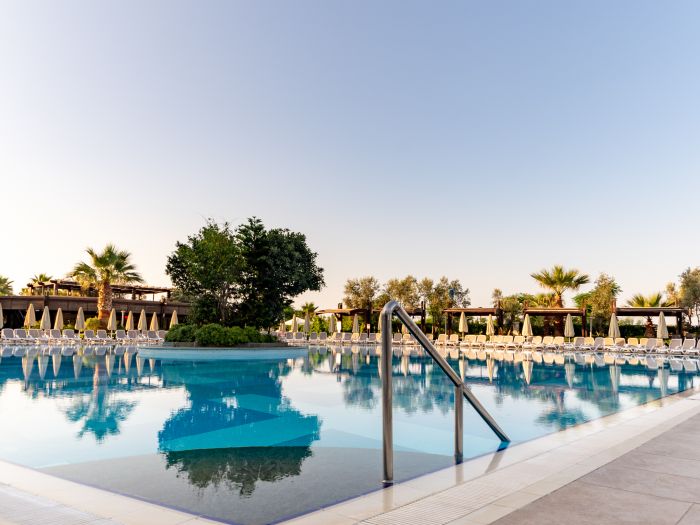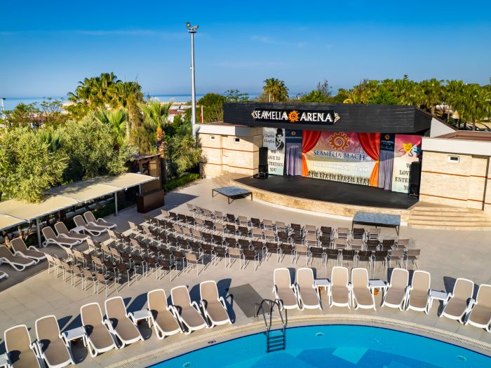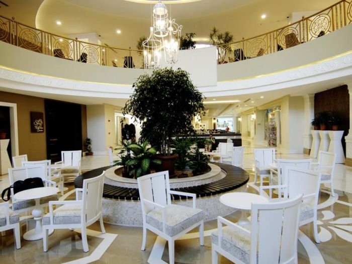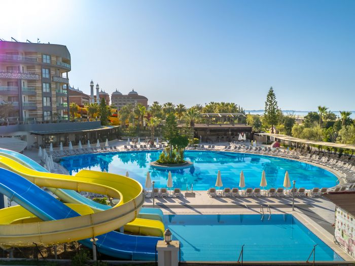 Основен ресторант, 4 а - ла - карт ресторанта (рибен, турски, италиански и китайски, с предварителна резервация, за едноседмичен престой - едно безплатно посещение на един ресторант), сладкарница, 6 бара, 2 открити и 1 закрит басейн, водни пързалки, амфитеатър, дискотека, мини маркет, 4 конферентни зали. За децата: 2 детски басейна – открит и закрит, мини клуб (4-12 г.), тийни клуб (11-15г.) – 6 дни в седмицата, детска анимация, лунапарк. Безплатни услуги: Сауна, турска баня, аеробика, дартс, тенис на маса, степ, боча, плажен волейбол, анимация, Wi-Fi (в лоби). Платени услуги: Масаж, Спа център, лекар, фризьор, рент-а-кар, химическо чистене, боулинг, билярд, интернет, електронни игри, водни спортове, фрешове на плажа. Плаж: Собствен - пясъчен, удостоен със сертификат „Син флаг”. Чадъри, шезлмонги, матраци и плажни кърпи на плажа и при басейните - безплатно.