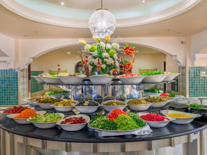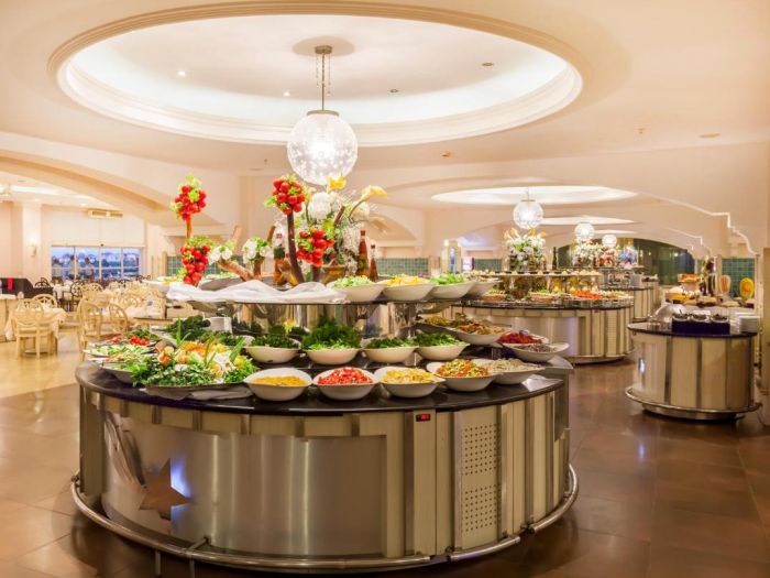 Хотелът разполага с основен ресторант, а-ла-карт ресторанти, 5 бара, дискотека, 3 открити басейна, закрит басейн, 5 водни пързалки, 2 конферентни зали, анимация. За децата: 4 детски басейна, детска площадка, мини клуб (4-12 г.),тийн клуб (12-16г.), 5 детски пързалки. Безплатни услуги - сауна, турска баня, фитнес, плажен волейбол, баскетбол, тенис на маса, анимационна програма, безжичен интерент (на лоби). Платени услуги: масаж, СПА, билярд, водни спортове, лекар, фризьорски салон, пералня, магазини, коли под наем.