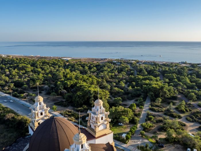 Собствен, пясъчен на 300 м. от хотела. Чадъри, шезлонги и матраци на плажа и при басейните – безплатно.