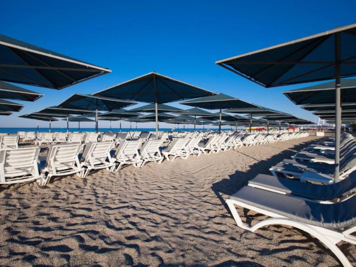 Плаж – собствен, пясъчно-чакълест. Чадъри, шезлонги и кърпи при басейна и на плажа – безплатно.