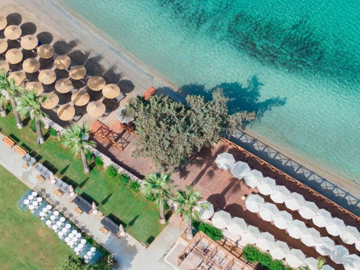 Плаж: Собствен, пясъчeн с дължина 150 м, притежаващ сертификат "Син флаг". Чадъри, шезлонги, матраци на плажа и при басейна – безплатно. Плажни кърпи - безплатно.