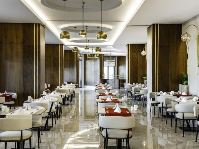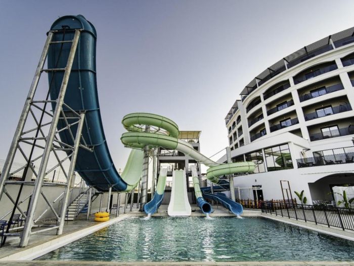 Основен ресторант, 2 а-ла карт ресторанта (рибен и турски), 5 бара, сладкарница, аквапарк, открит и закрит басейн, диско, фитнес, мини-клуб, мини-диско, анимация, СПА център, салон за красота, игрална зала, конферентна зала.