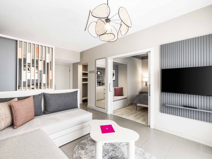 Хотелът разполага с 300 стаи – Deluxe Suite ( 40м2 + балкон 11м2 ), Deluxe Suite Sea View ( 40м2 + балкон 11м2 ), 2 Bedroom Deluxe Suite ( 46м2 + балкон 11м2 ), Deluxe Suite with Poolside Terrace (40м2 + балкон 14м2), Deluxe Suite Swim Up Adult Only +12 (40 м2 + балкон 40м2), Deluxe Suite with Relax Garden Terrace (40 м2 + балкон 40м2), Penthouse Suite with Jacuzzi Direct Sea and Ancient Theatre View (40м2 + балкон 30м2).