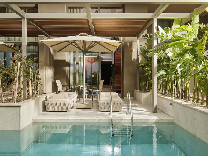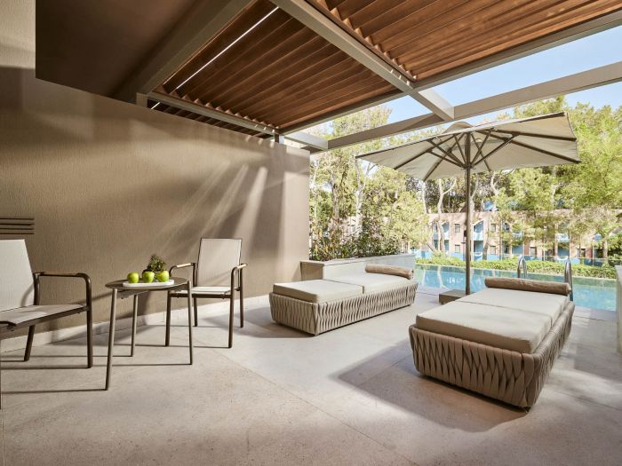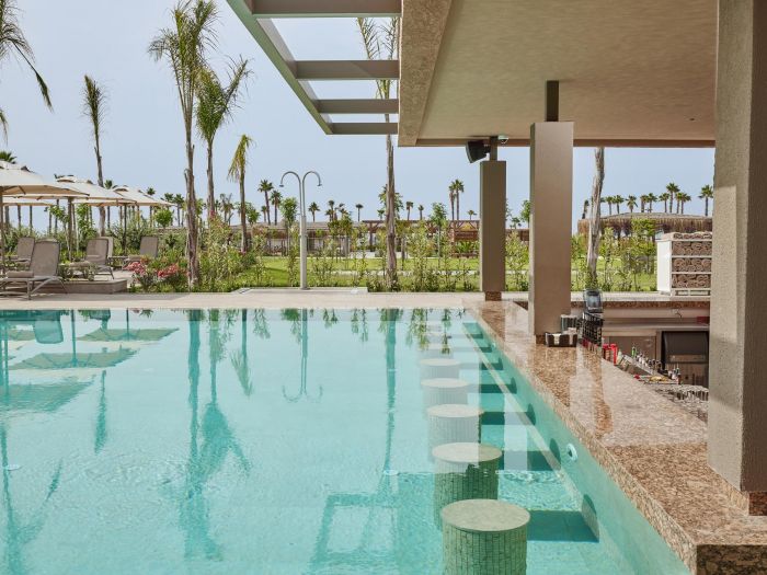 Хотелът разполага с общо 313 стаи, разположени в 6-етажна основна сграда, от които Standard Room (с изглед природа или море - 36-45 м2), Superior Standard Room with Jacuzzi (с джакузи на терасата, изглед море – 49 м2), Swim-Up Room (с директен достъп до басейн от терасата, изглед природа – 57 м2), Infinity Swim-Up Room (с директен достъп до басейн от терасата, морска гледка – 56-62 м2), Family Room (2 отделни спални, 1 баня – 50 м2), Superior Family Suite (2 отделни спални, 2 бани, 1 балкон – 66 м2), Lagoon Suite (1 спалня, 1 баня, с директен достъп до басейн от терасата, изглед градина и басейн – 59 м2), Dublex Lagoon Suite (1 спалня, 1 дневна, 2 бани, разположени на 2 етажа, с директен достъп до басейн от терасата, изглед градина и басейн – 81 м2), Honeymoon Penthouse (разположен на последния етаж с морски изглед, 1 спалня, 1 баня, гардеробна, с джакузи на терасата – 69 м2), Loft Penthouse (разположен на последния етаж с морски изглед, 1 спалня, 1 дневна, 2 бани, с джакузи на терасата – 127 м2), Fabulous Suite (1 спалня, 1 дневна, 2 бани, с директен достъп до собствен басейн (27 м2) на терасата – 100 м2), Presidental Suite (3 спални, 1 дневна, 3 бани, с директен достъп до собствен басейн (90 м2) на терасата – 290 м2).